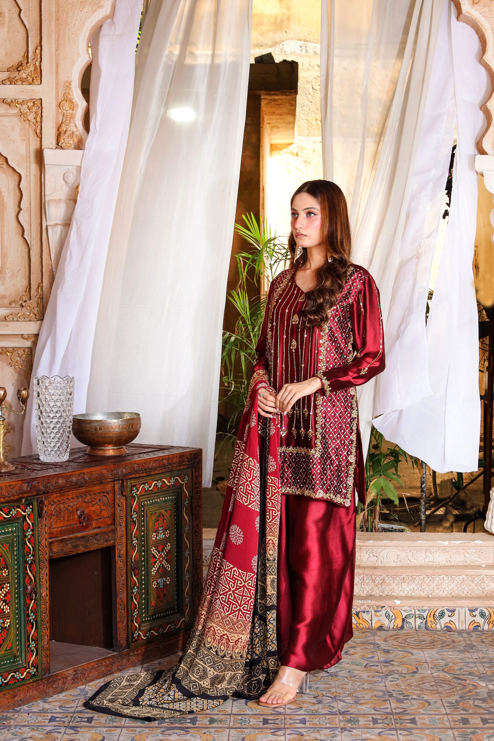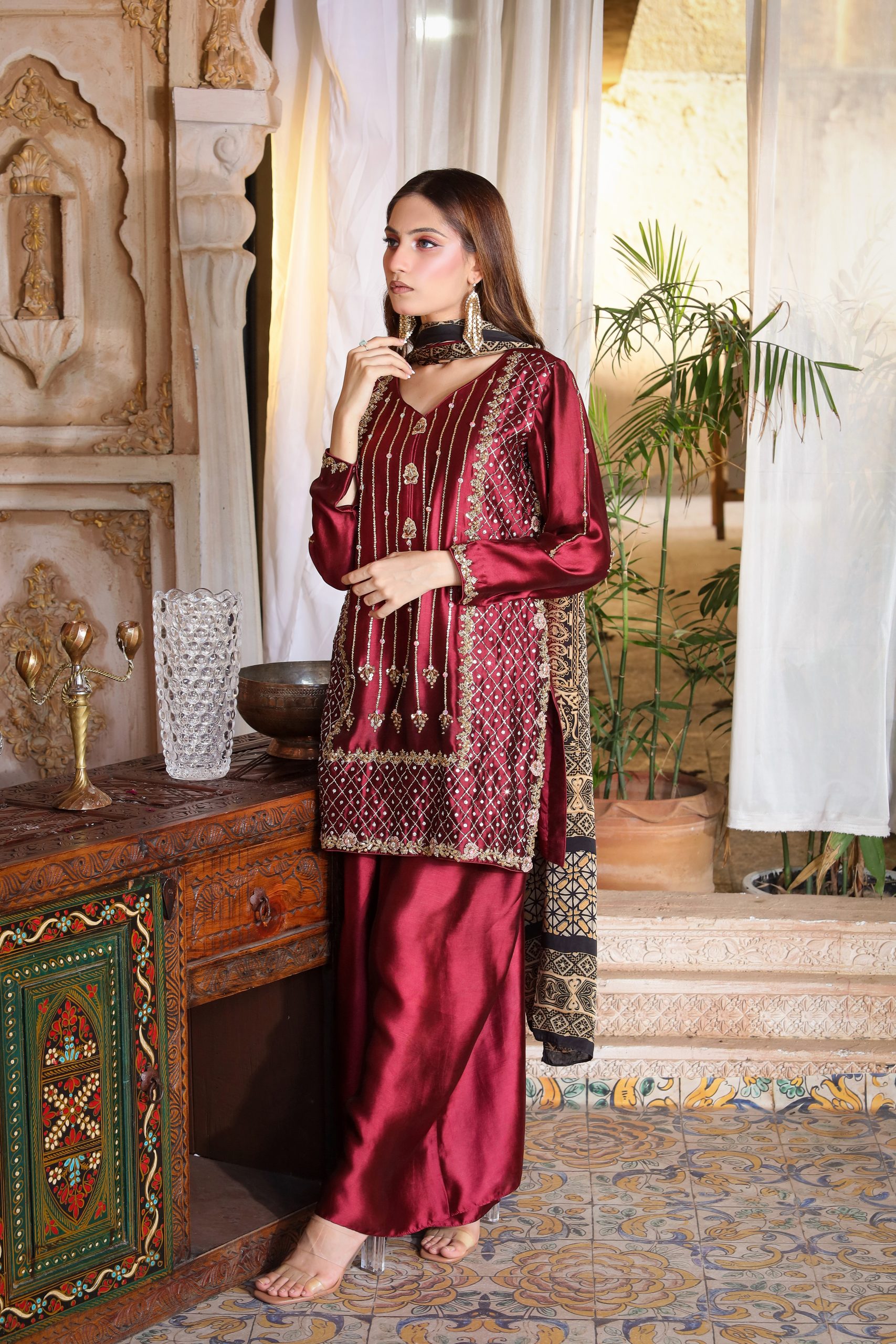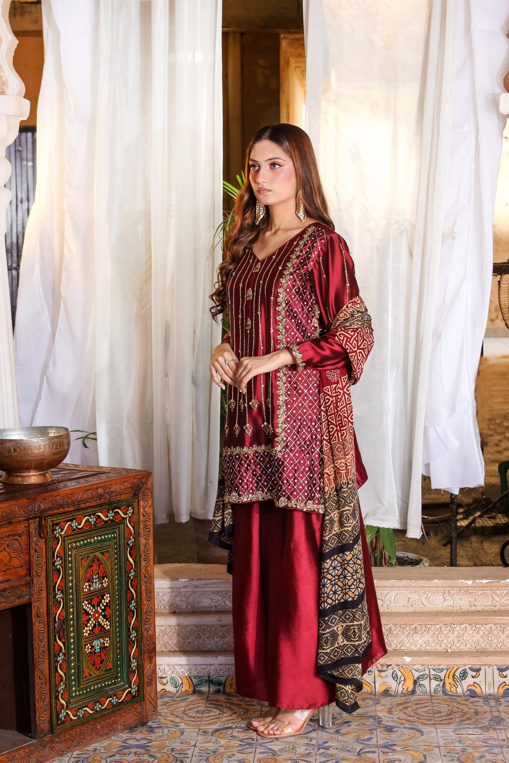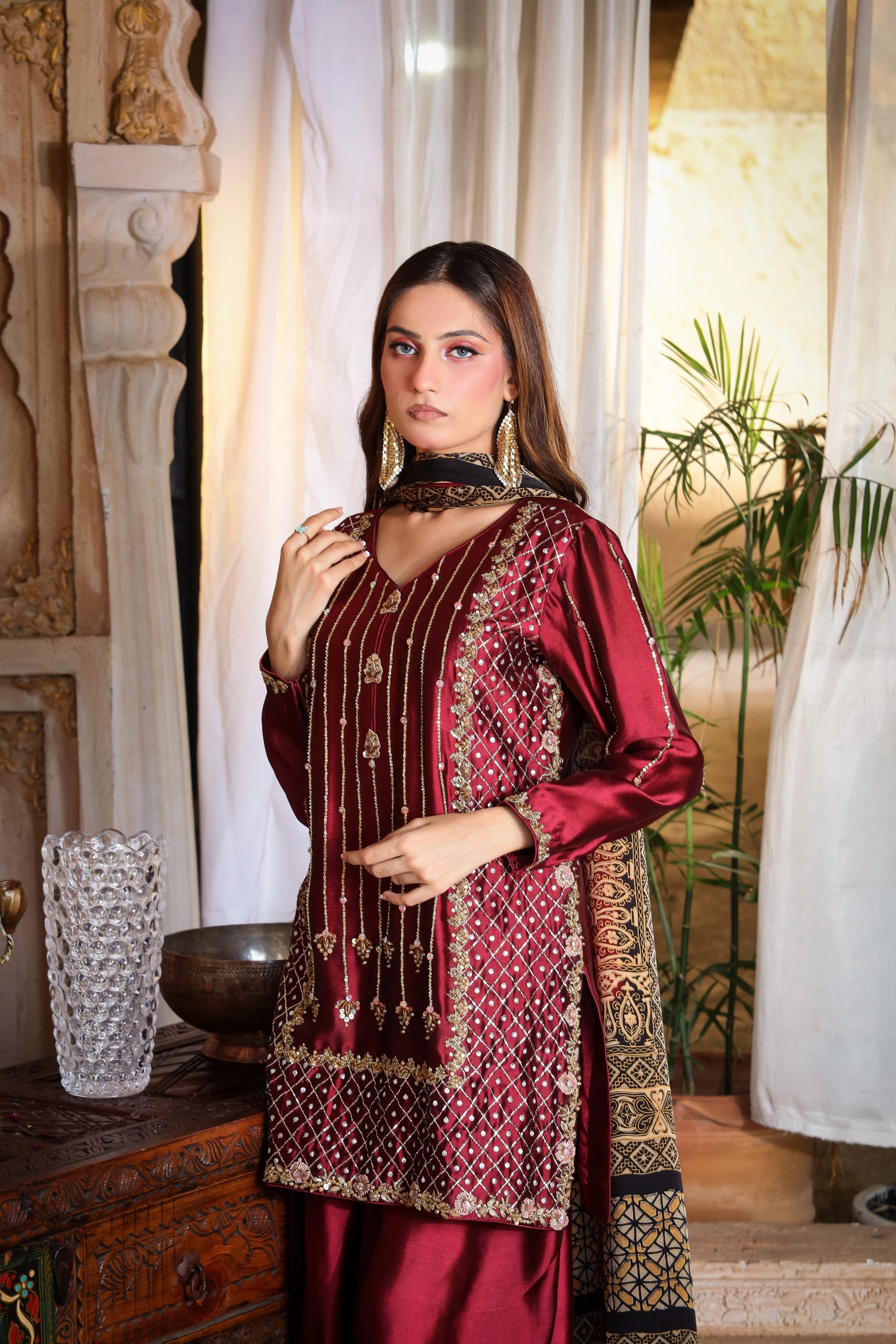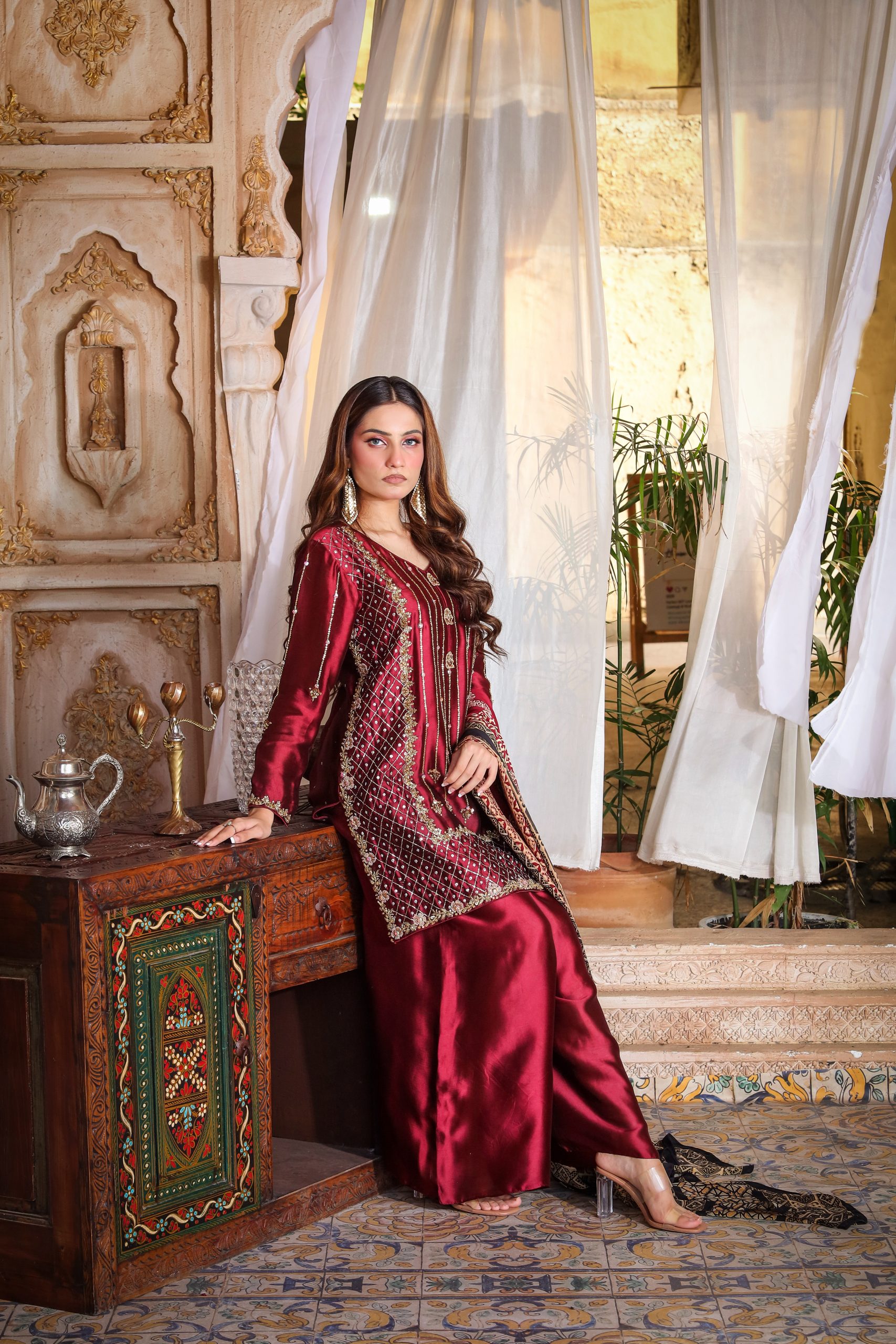 2-Piece Pure Sheesha Silk Suit (Maroon)
