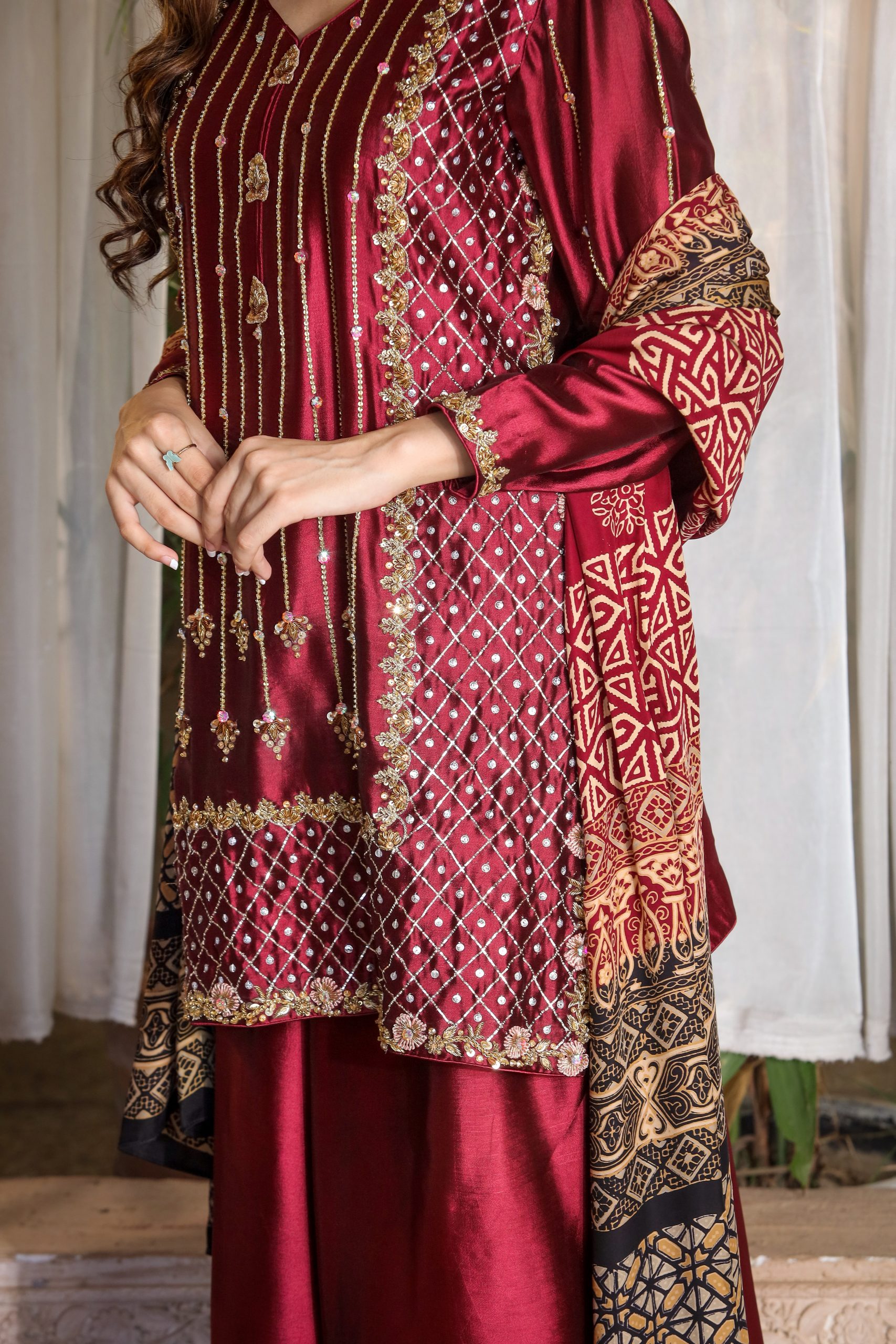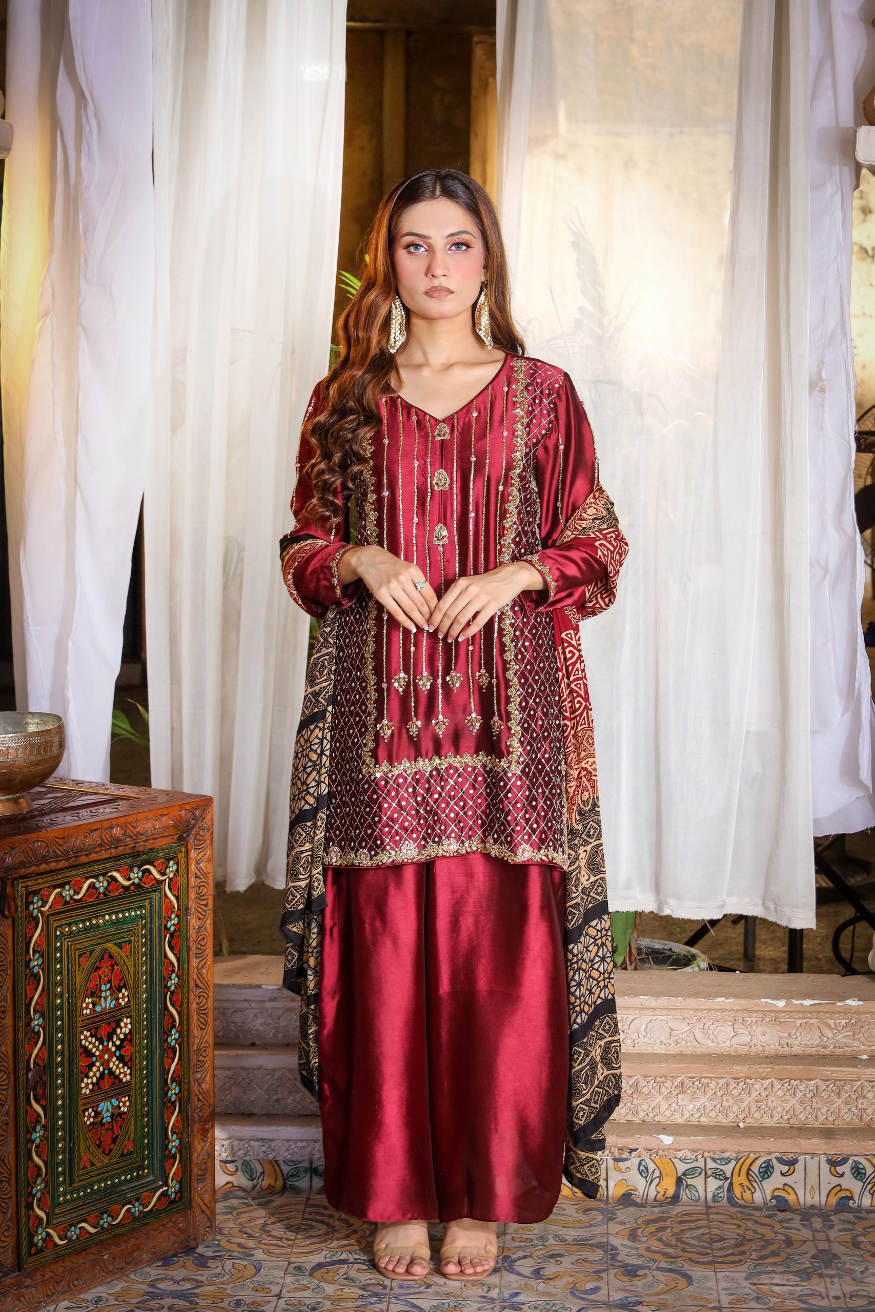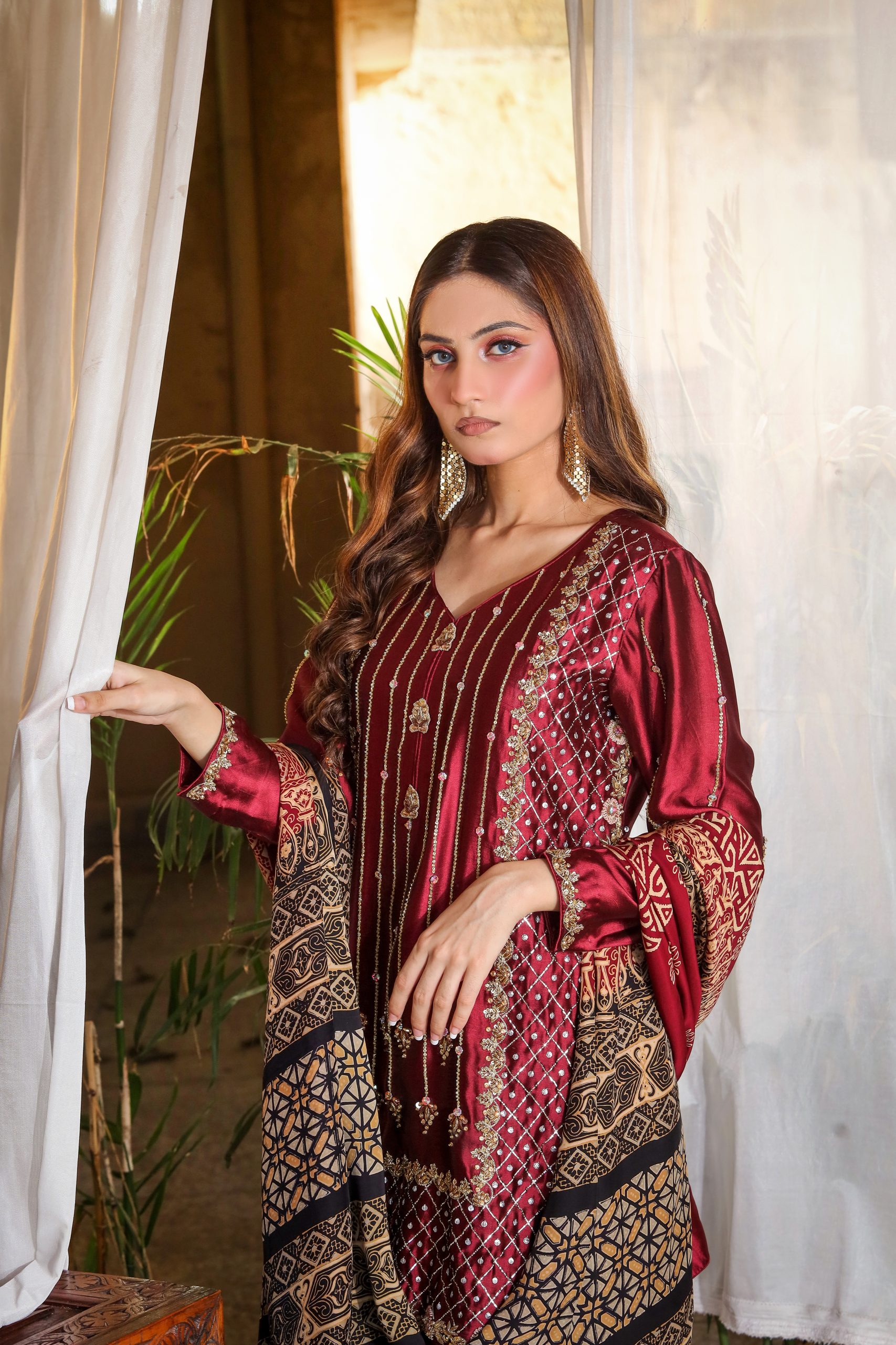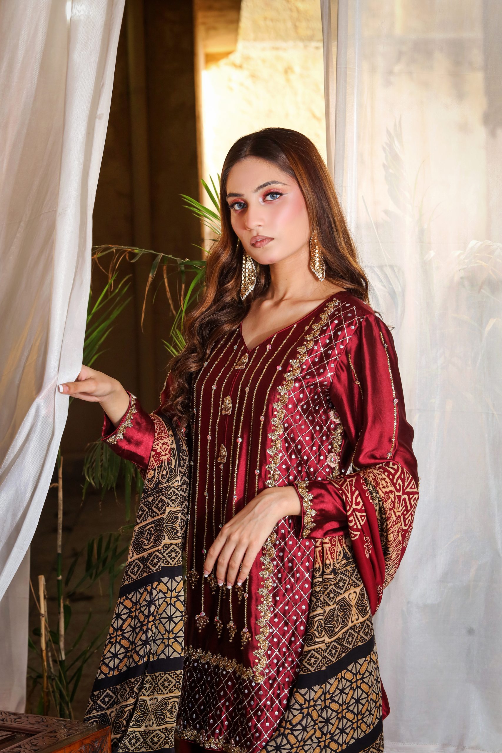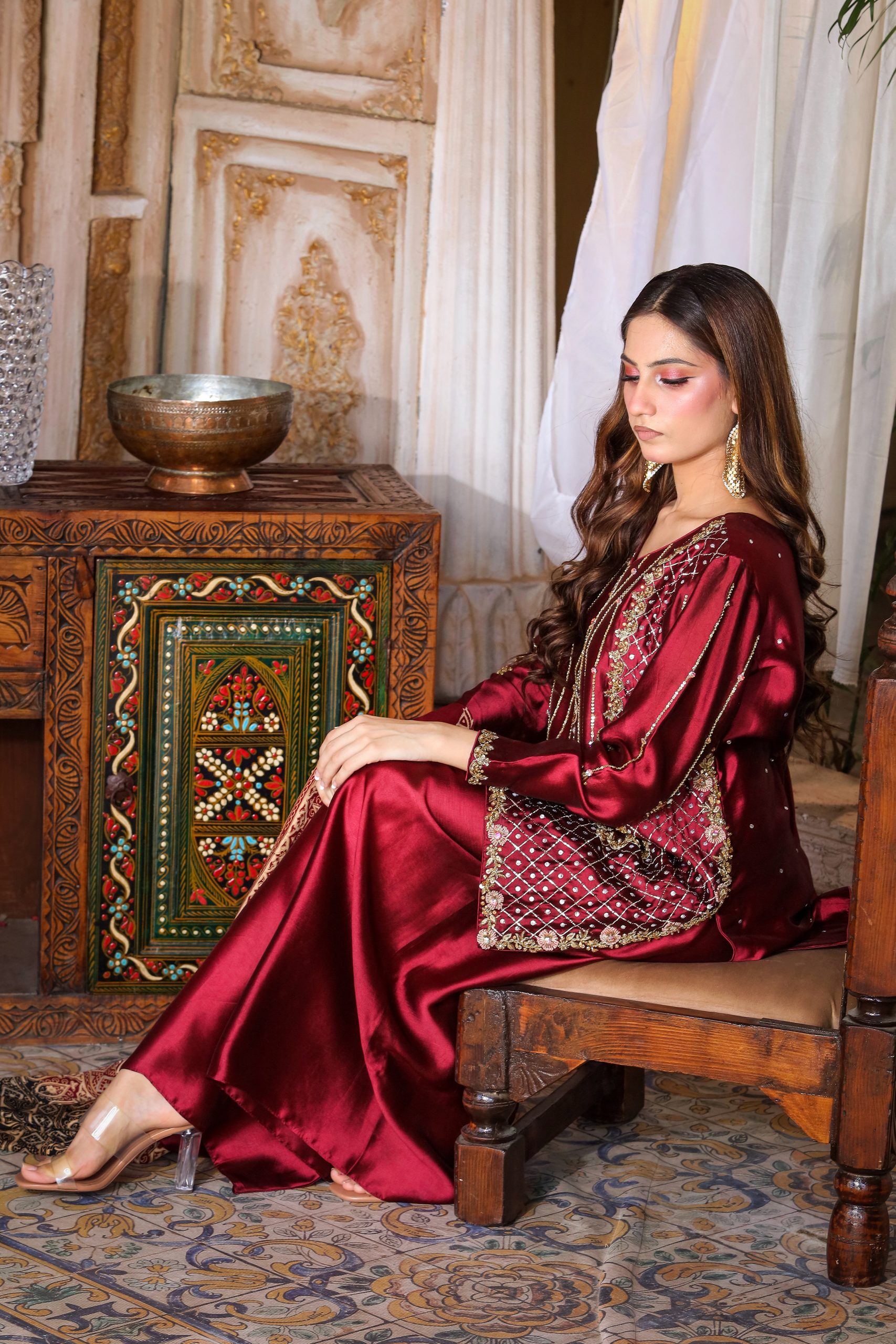 2-Piece Pure Sheesha Silk Suit (Maroon)